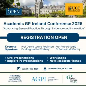 Co-hosted by the Department of General Practice University College Cork, Cork Postgraduate GP Specialist Training Programme and the Irish College of GPs.